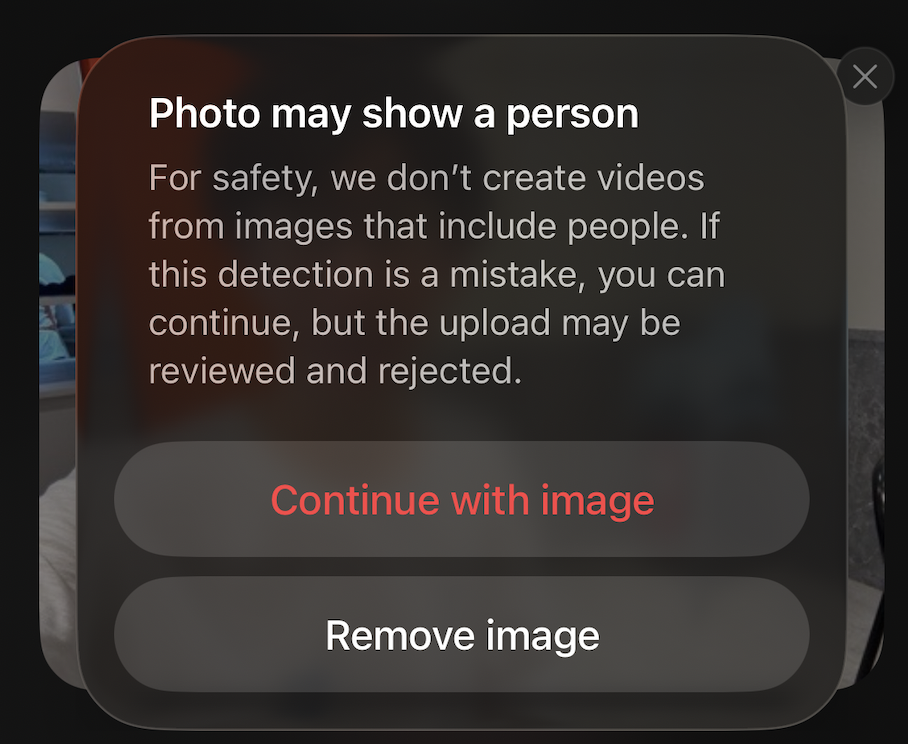 自分の画像を使用して、面白い動画を作ろうとしましたが、以下のような警告文が来ました。