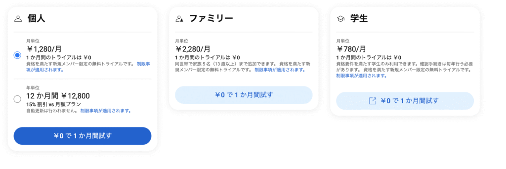 プランは上の通りで、自分の場合は学生プランで加入しております。