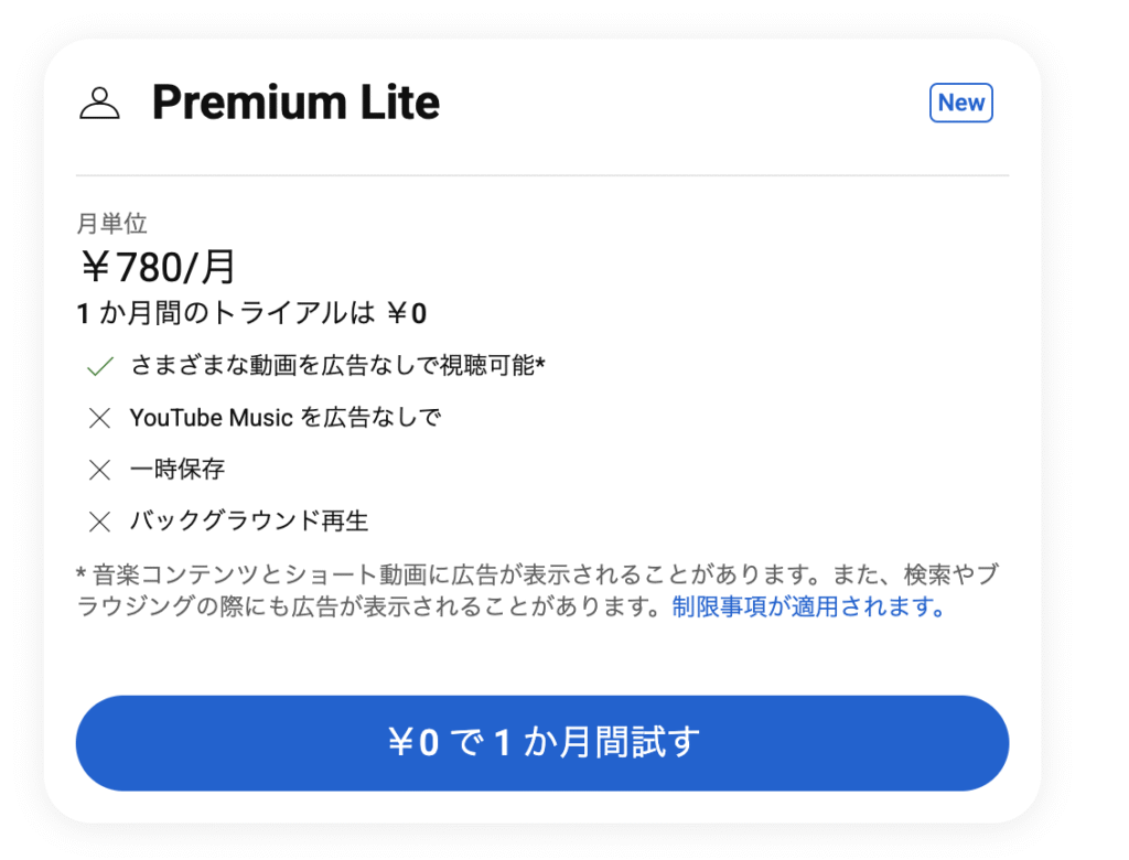 バックグラウンド再生と一時保存、YouTube Musicがない代わり、学生料金と同額でサブスクできるプランが追加されていました。