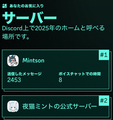 そしてサーバーも送信してMintsonサーバーから夜猫ミントの公式サーバーになったのも今年でした。