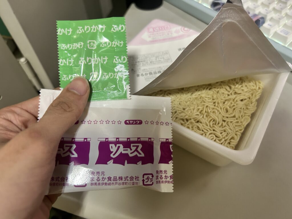中身はペヤングのデフォルトのカップ焼きそばめんにソースとふりかけが入っていました。