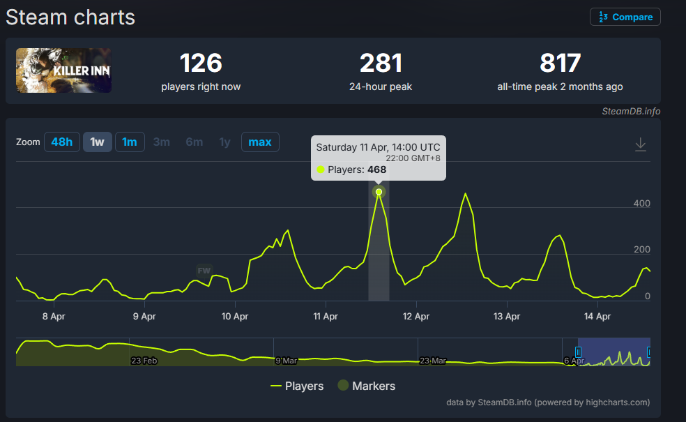 下の画像は2026/04/14時点のSteam同時接続数のグラフです。