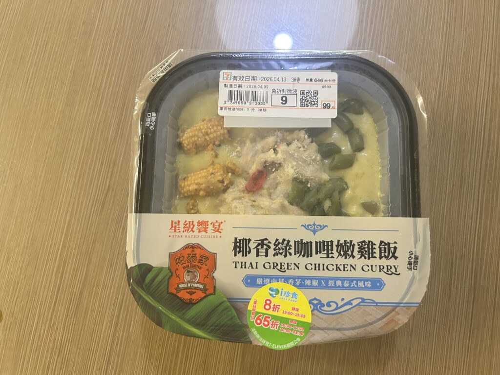 今回は台湾のセブンイレブンでグリーンカレーがセールで売っていたので食べてみました。